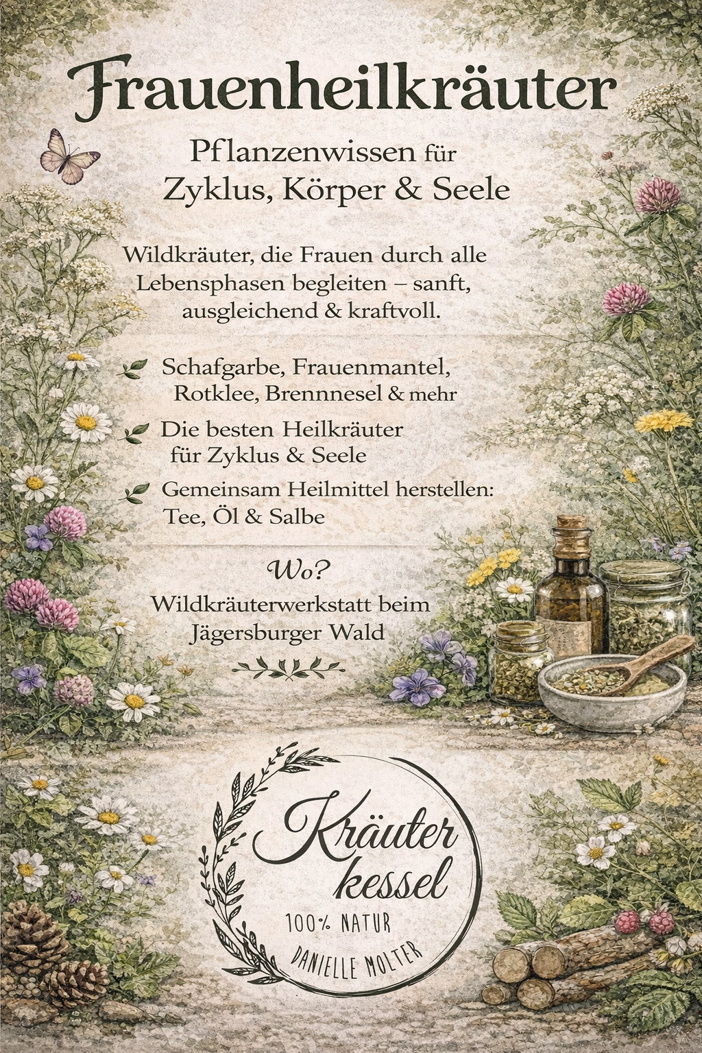 Im Mai zeigt sich die Natur in ihrer vollen weiblichen Stärke. In diesem Workshop tauchen wir gemeinsam in die Welt der heimischen Frauenheilkräuter ein und entdecken, wie uns die Pflanzen auf natürliche Weise bei körperlichen und seelischen Themen unterstützen können.